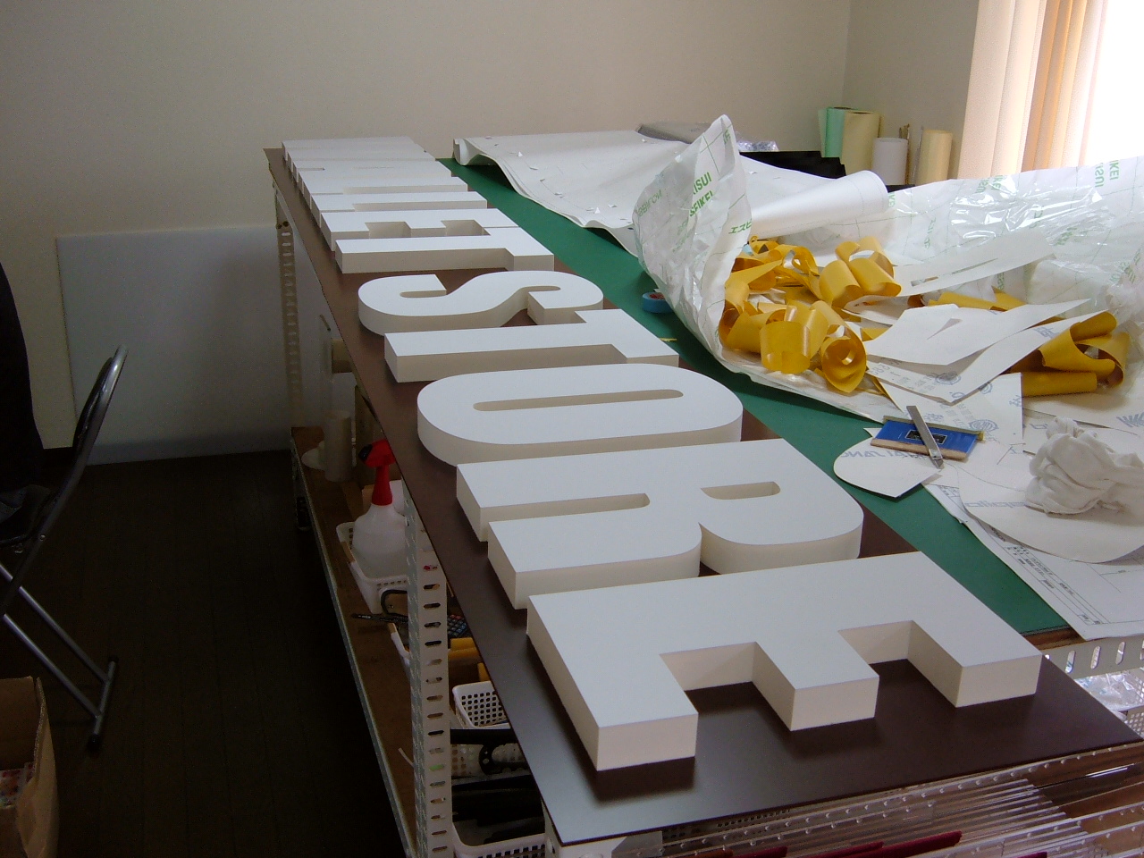 カルプ文字は発砲樹脂のカルプボードを切断した立体文字です。厚みは主に10mm〜50mm程度が一般的です。