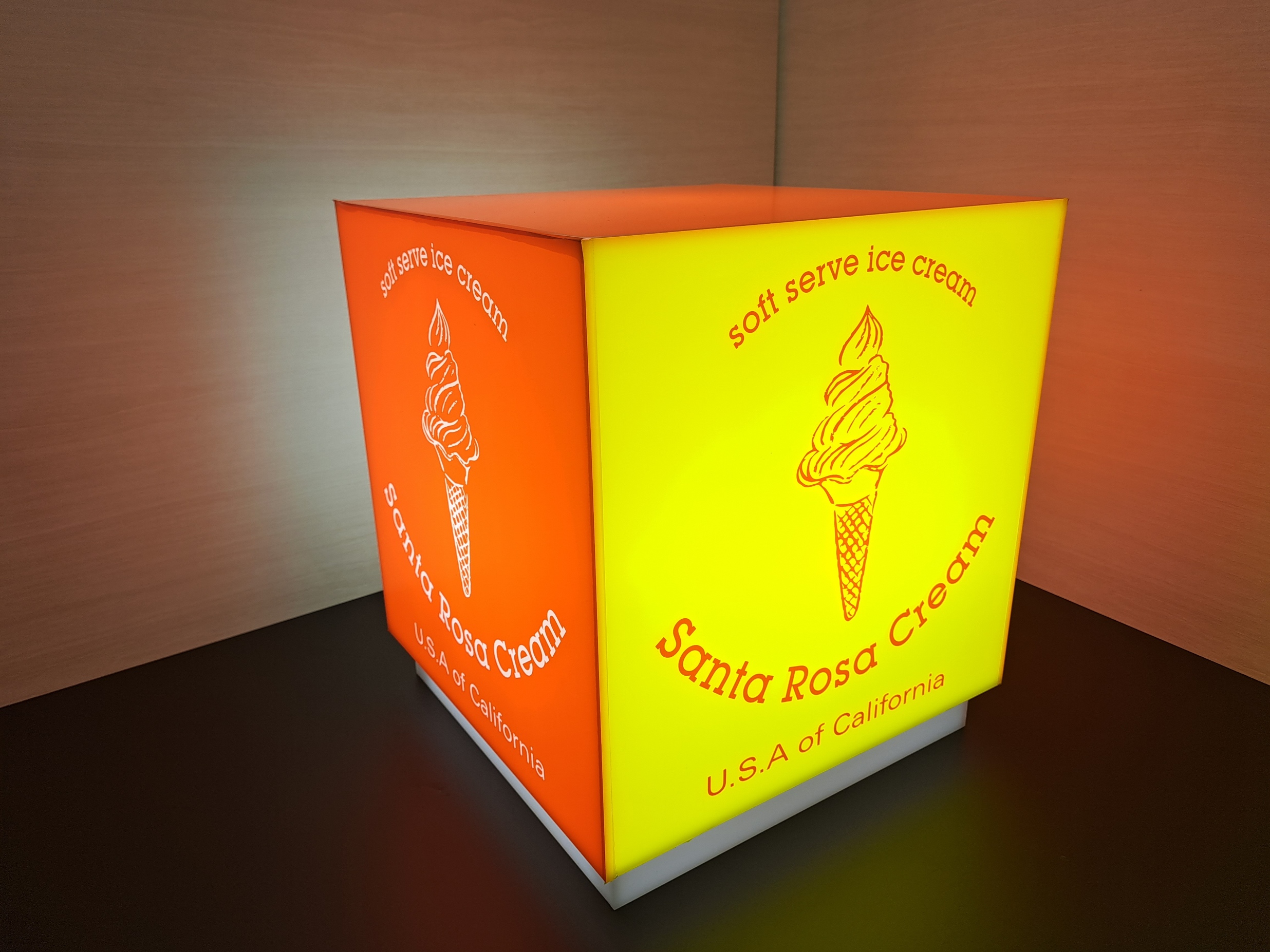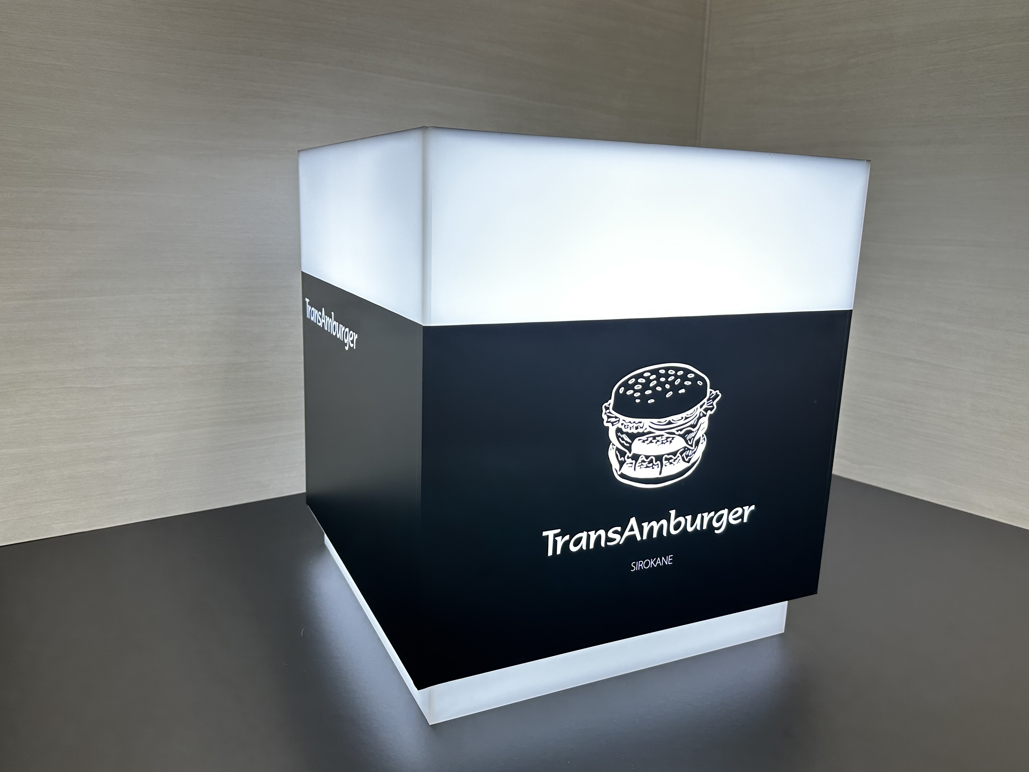 本体カバーアクリル乳半t=5mm+装飾加工 背板取付けベースアクリル白t=5mm五面体 4点ビス止め仕様