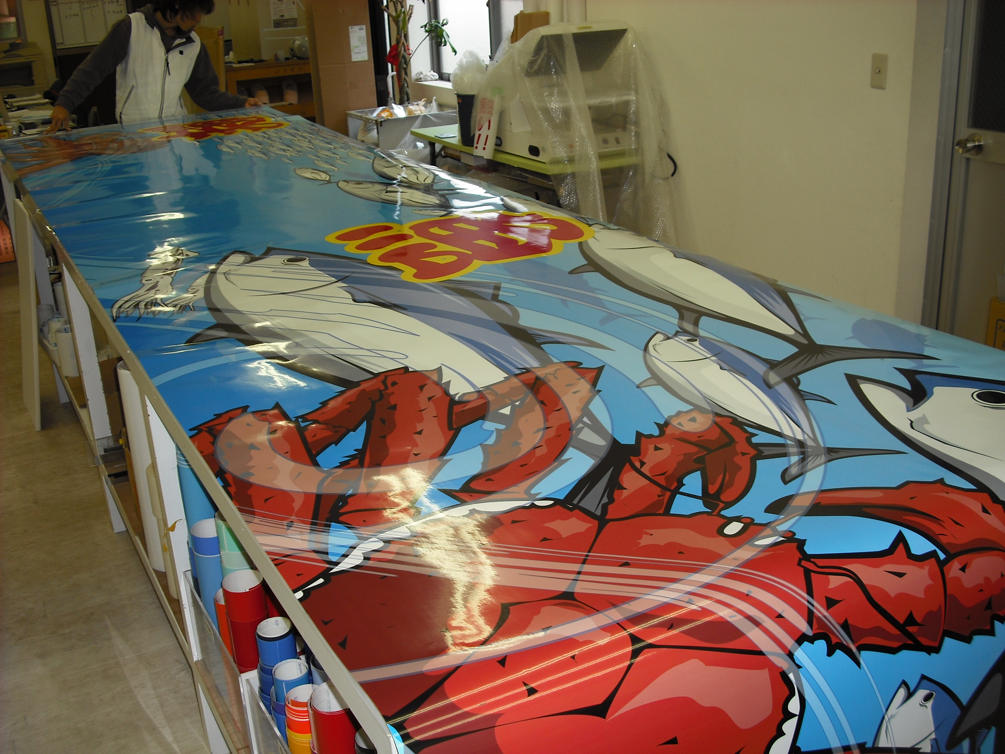 ■壁面看板(アルミ複合板3mm+インクジェットシート巻き込み貼り)