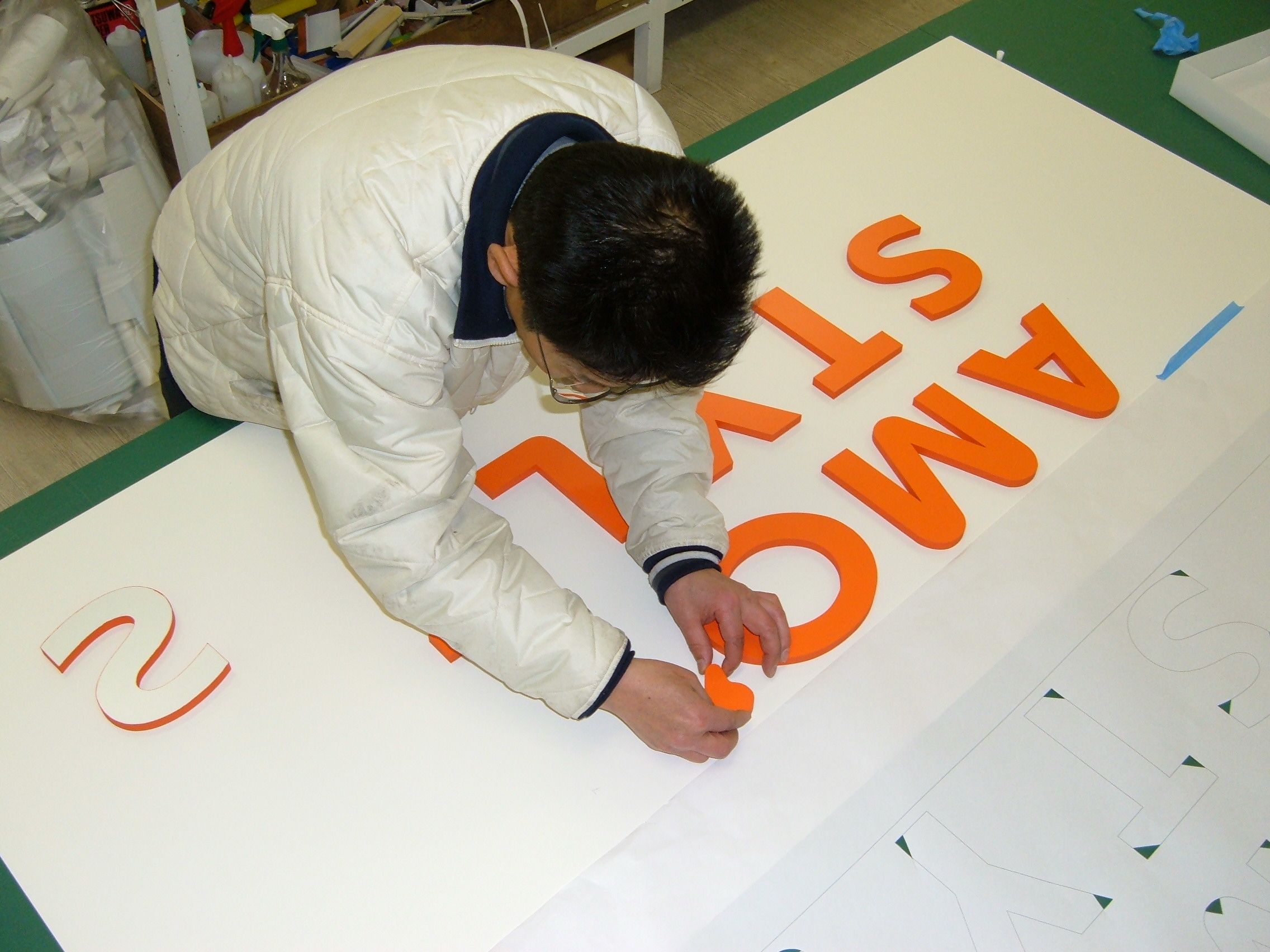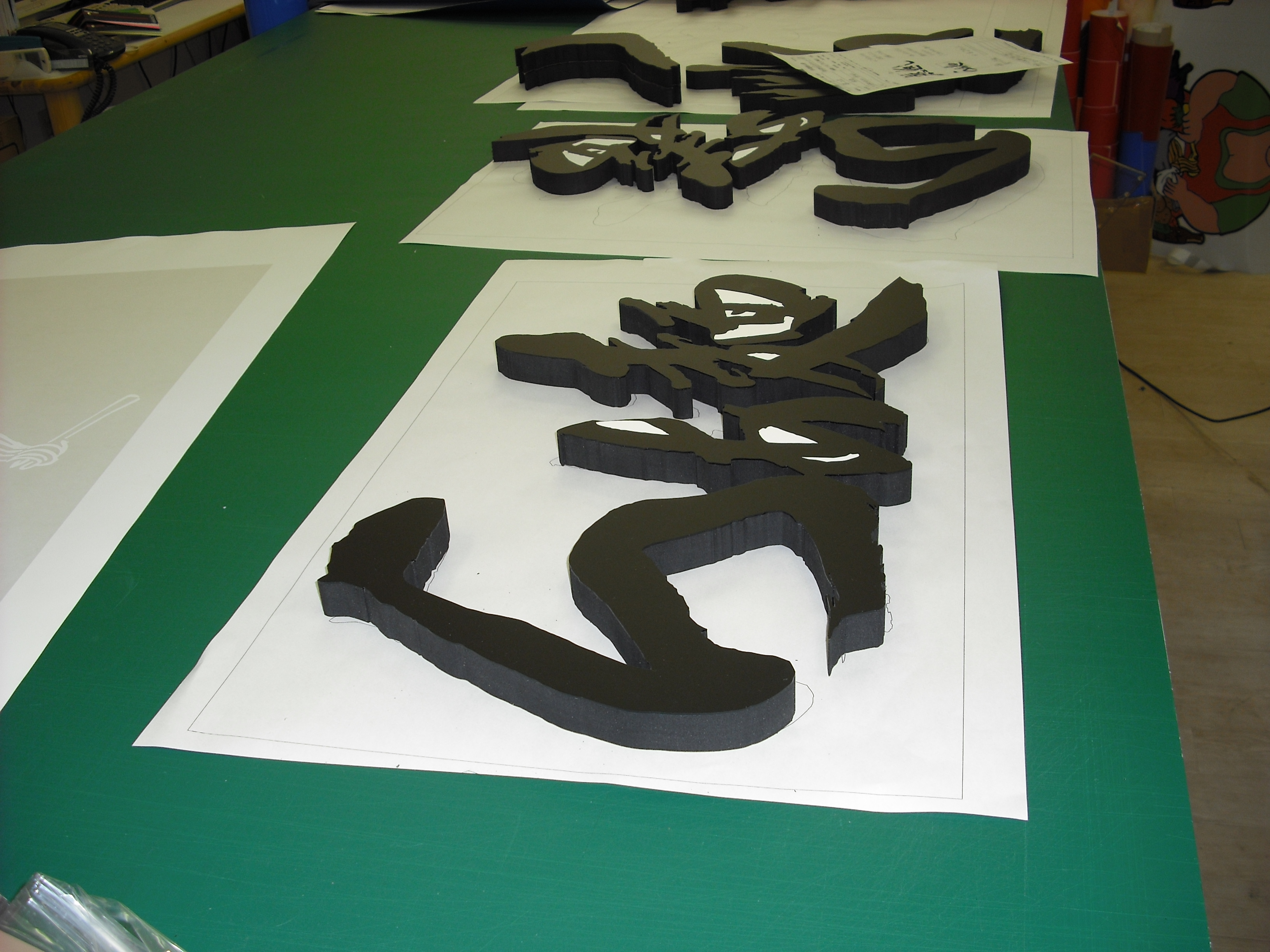 カルプ文字は発砲樹脂のカルプボードを切断した立体文字です。厚みは主に10mm〜50mm程度が一般的です。
