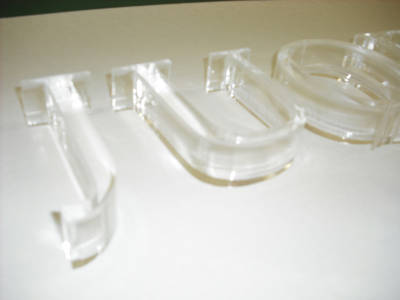 アクリル切り文字はレーザー加工機でカット加工した切り文字です。厚みは2mm〜5mmが一般的です。