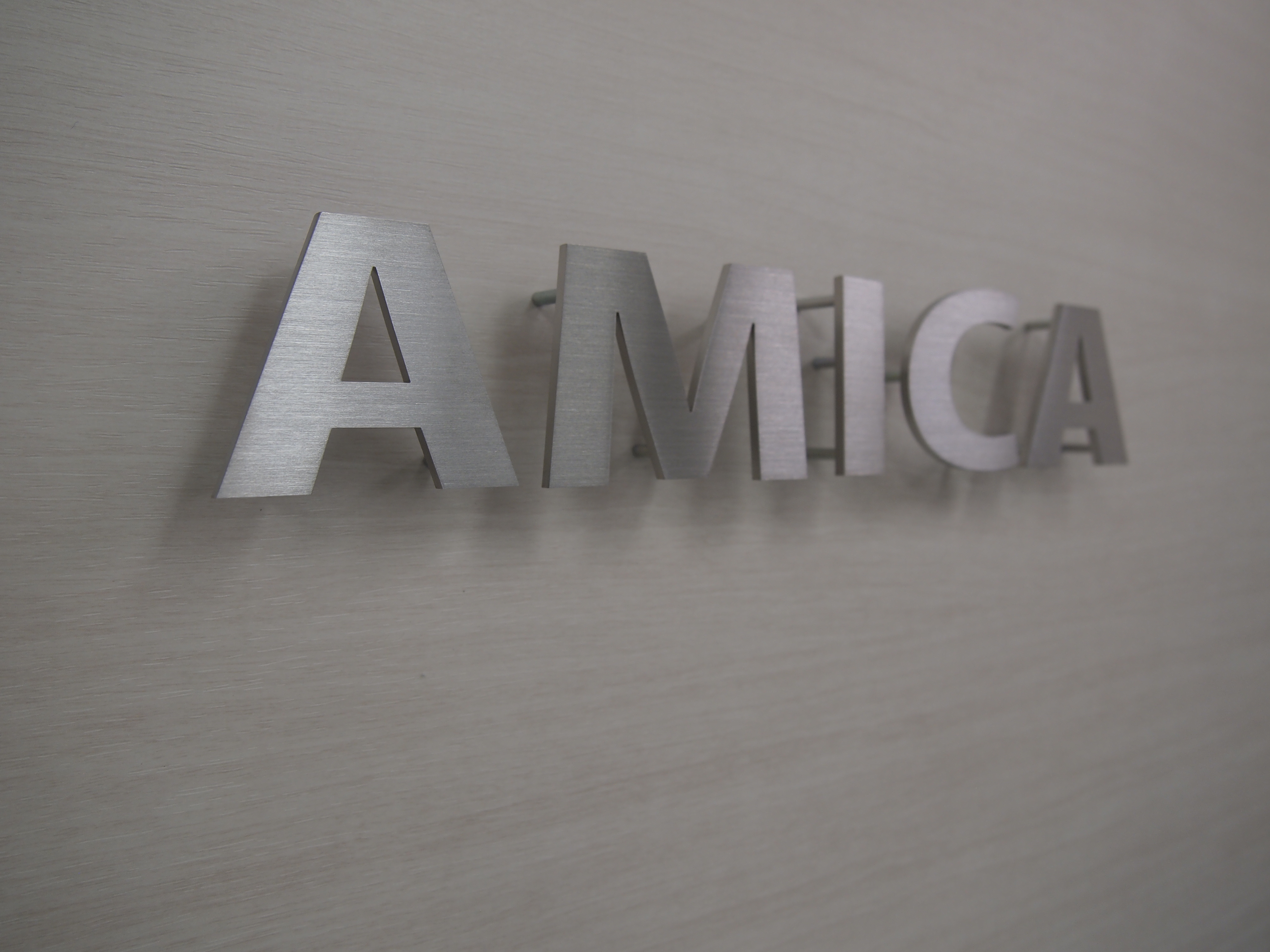 ステンレス切り文字はレーザー加工機でカット加工した切り文字です。厚みは主に2mm〜5mm程度が一般的です。